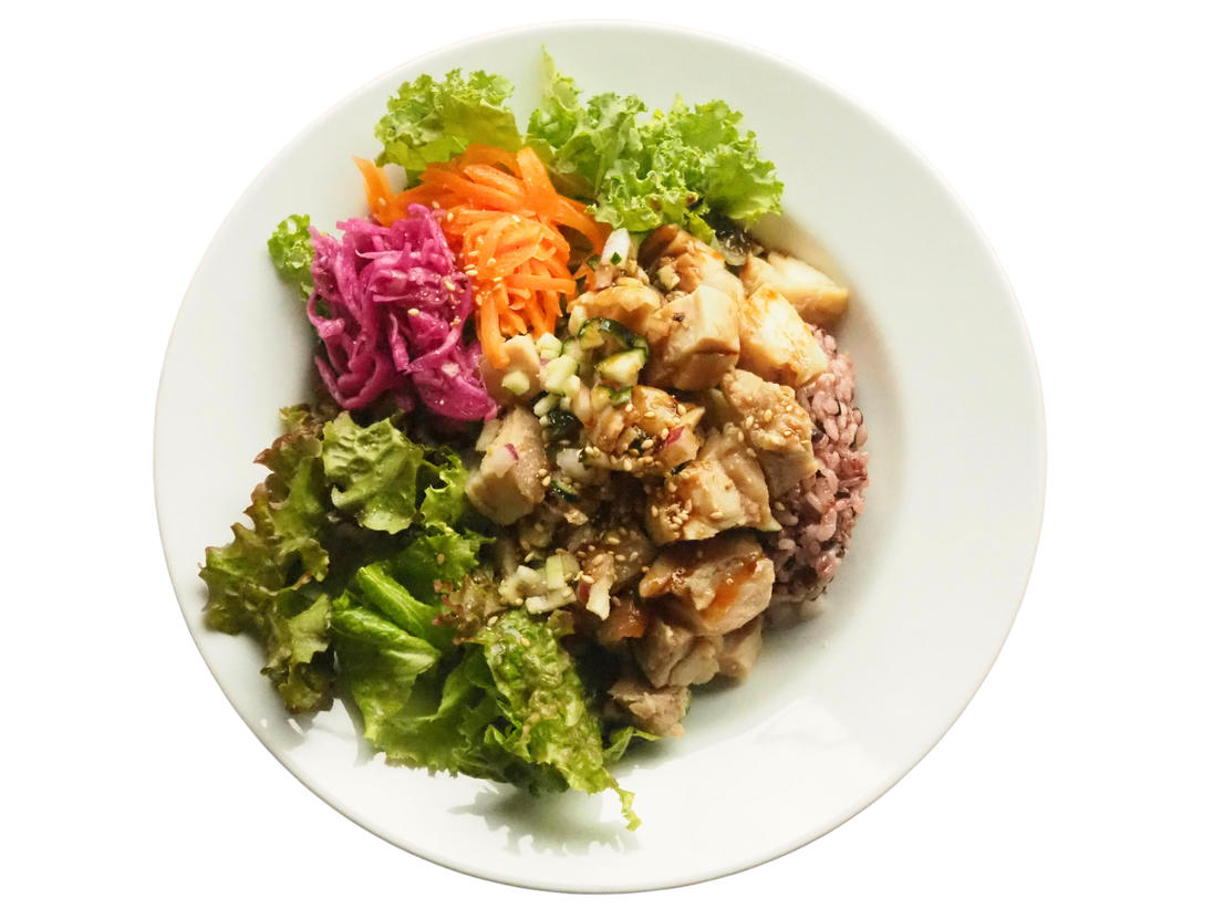 毎日変わる新鮮なポキ丼を主役に、栄養満点な雑穀米とカラフルなサラダが彩りを添える逸品です。